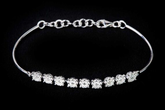 Diamond flower at the center and diamond chain at the closing of the bracelet