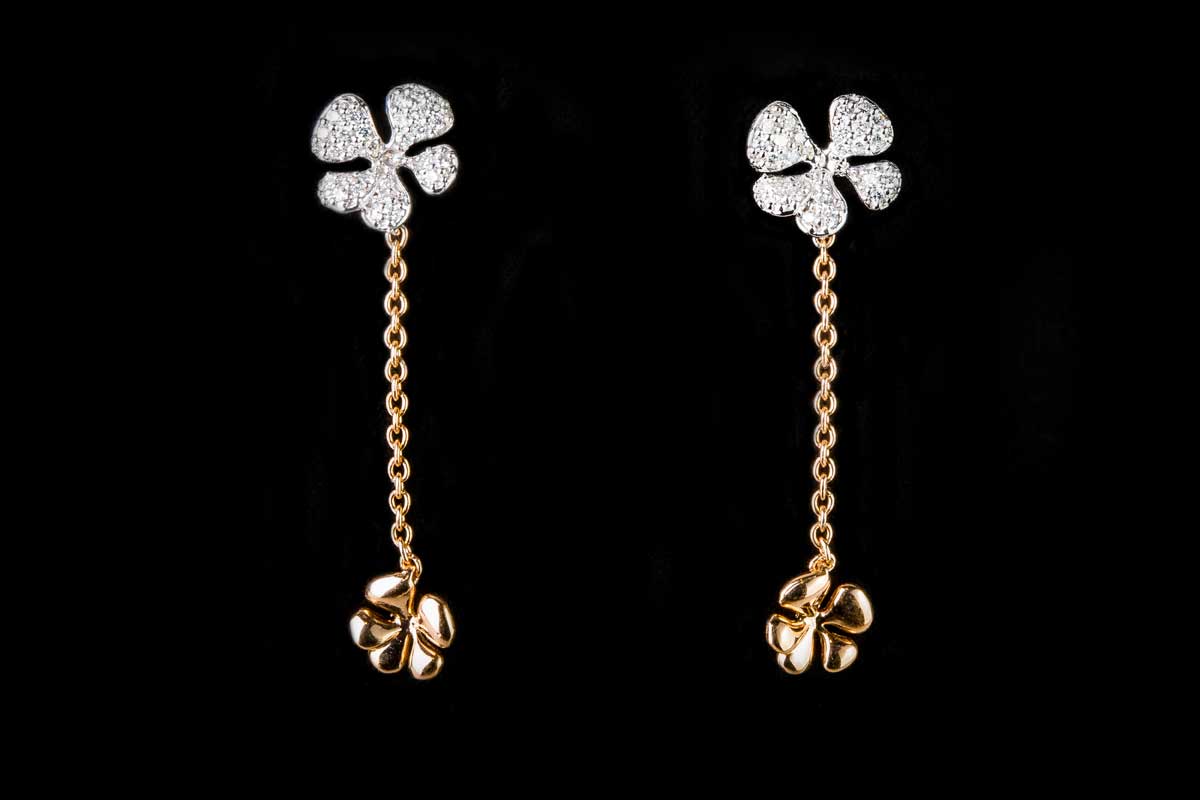 Two flowers on the chain with diamond earrings
