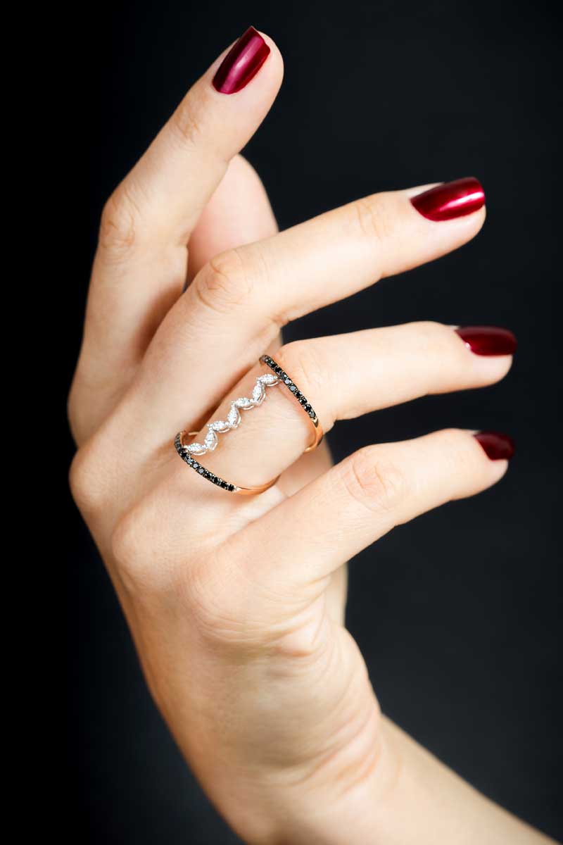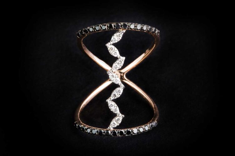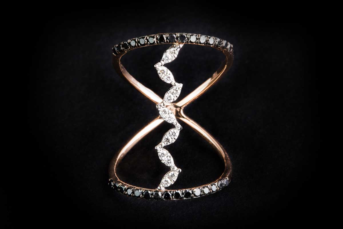 Composition: 18k Pink gold with white Diamonds, 0.16 cts, Black Diamonds, 0.50 cts, Weight 4.06 gr
