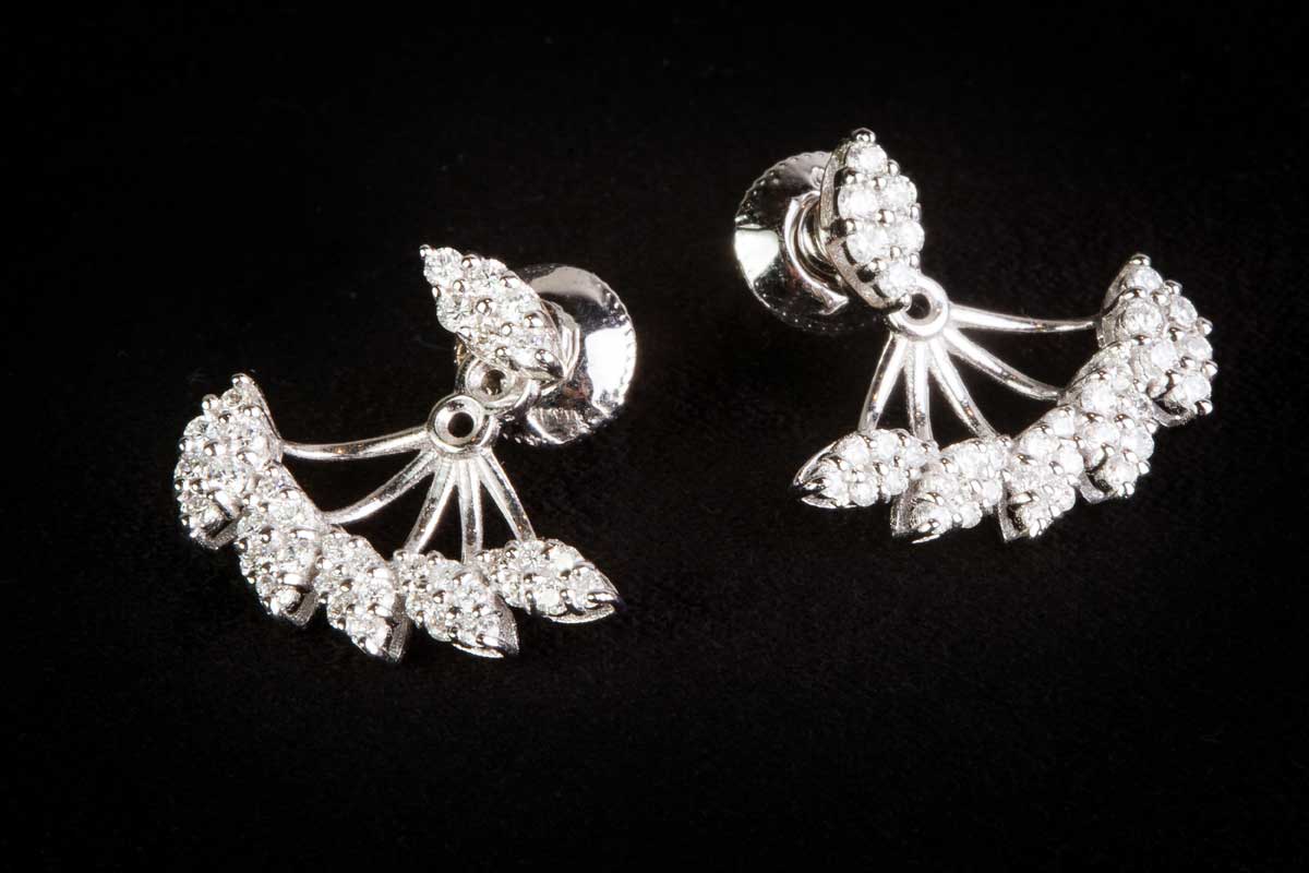 White diamond leave in the center and five leaves below earrings