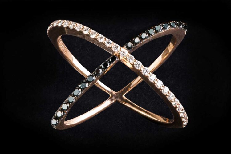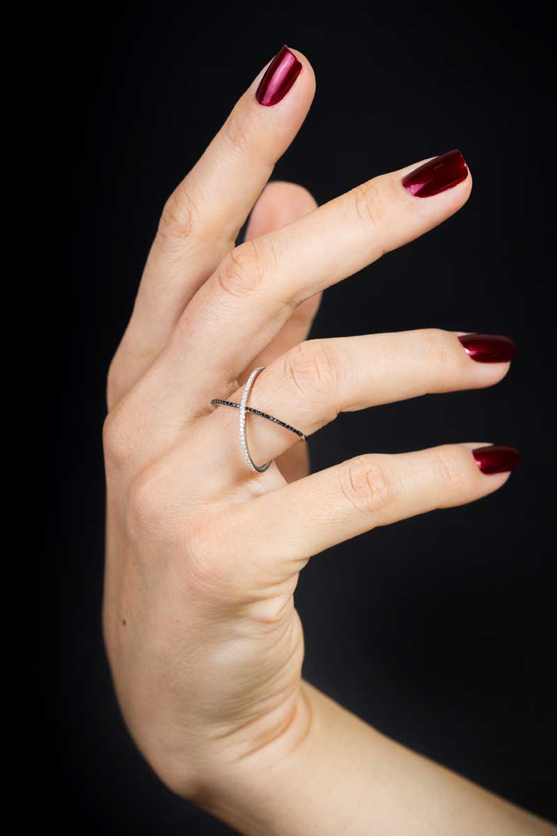 Composition: 18k White Gold with white Diamonds, 0.13 cts, Black diamonds, 0.13cts, Weight 2.36 gr